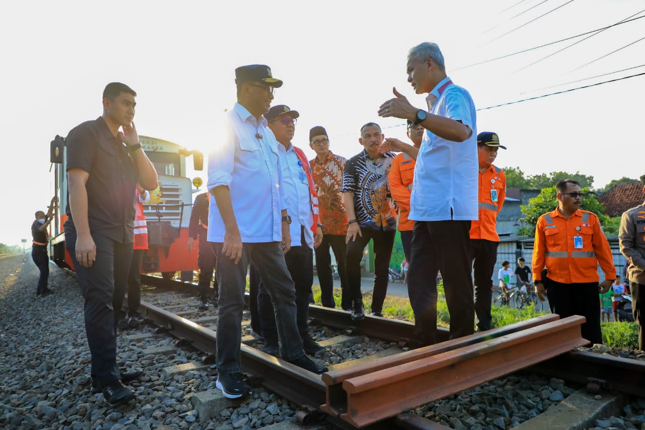 Usai melihat kondisi Stasiun Purworejo dan Stasiun Kutoarjo, Ganjar beserta Menhub Budi dan rombongan kemudian naik Kereta Lori dari Stasiun Kutoarjo untuk menengok rel yang mengarah ke Stasiun Purworejo. (RLS)